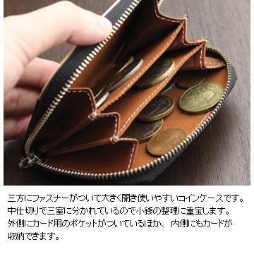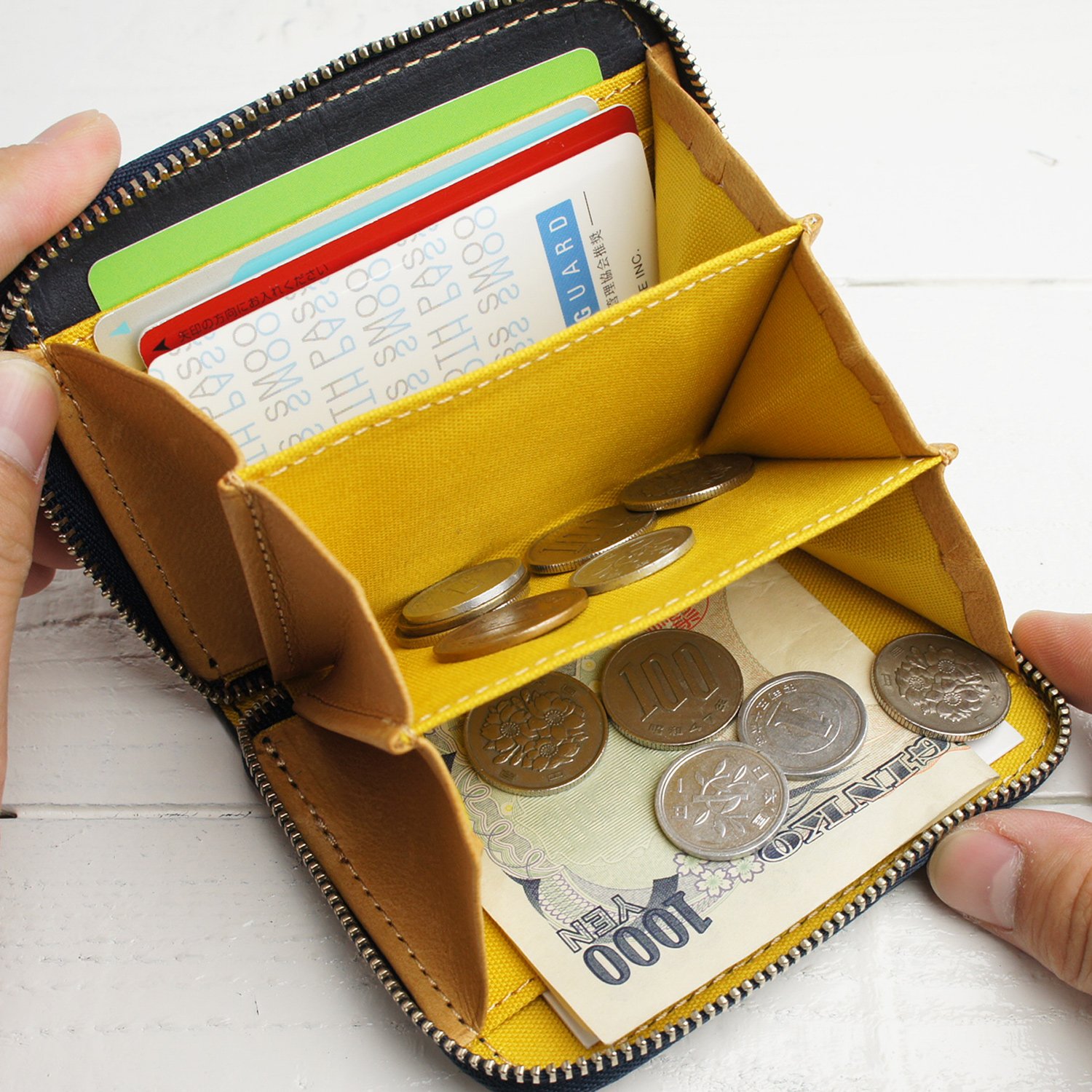 - コ型ファスナーには、二つ折り財布に通じる使い勝手の良さがある。